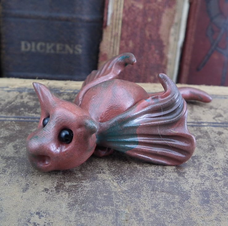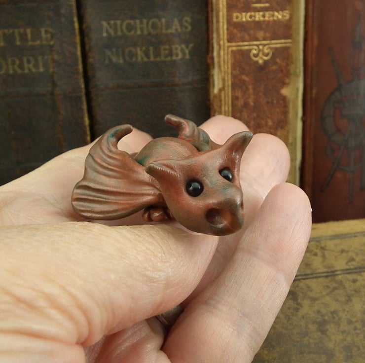 A 'one of a kind' creation having been entirely handmade without the use of moulds here at my studio on the Sussex Coast. Modelled with Prosculpt polymers, painted with heat set paints before sealing with lacquer. Quiste is just two and a half inches from snout to tail ...