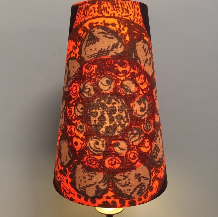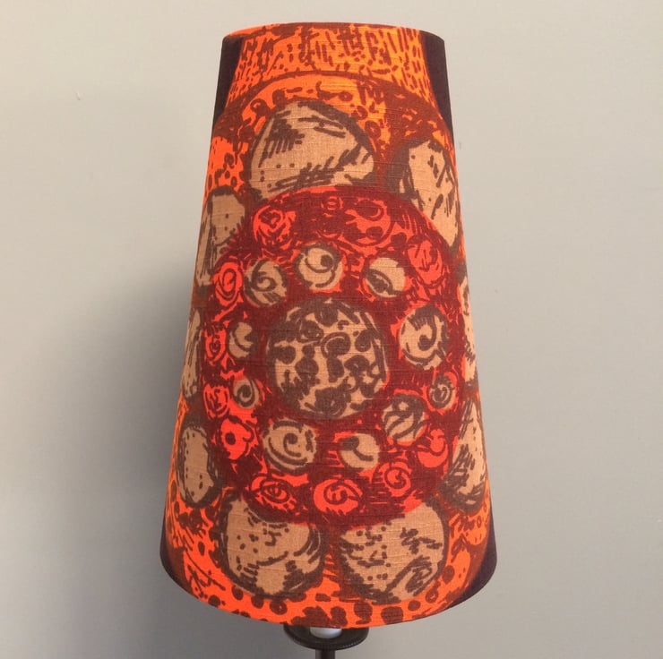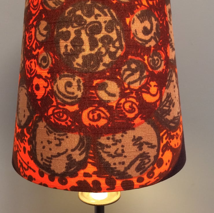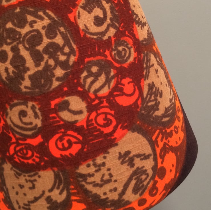 Scandi Mid Century SIPULII Lampshade in BORAS Orange Brown vintage fabric - featuring a fabulous Swedish vintage fabric, Sipuli by Saini Salonen for Boras - A bold feature in either a modern country or retro setting.