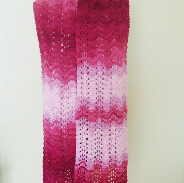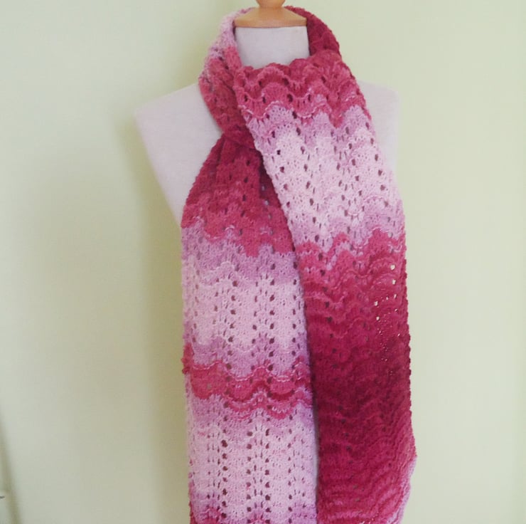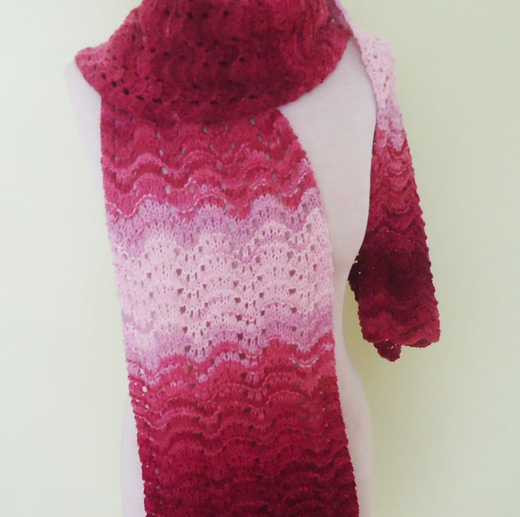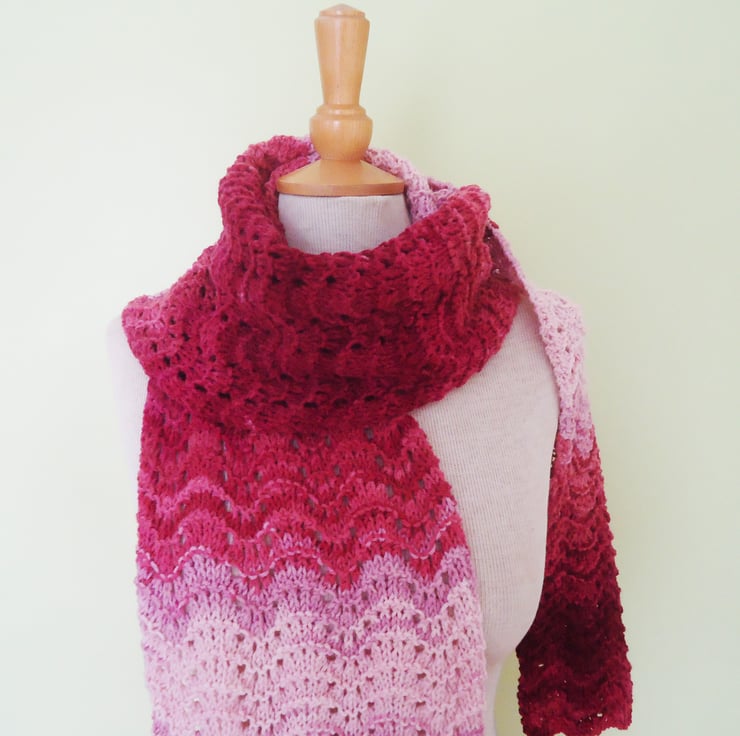 This scarf is made with wool and acrylic yarns.