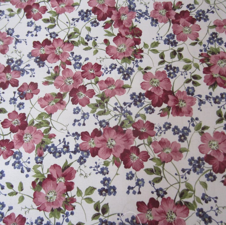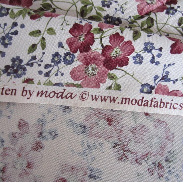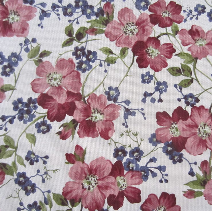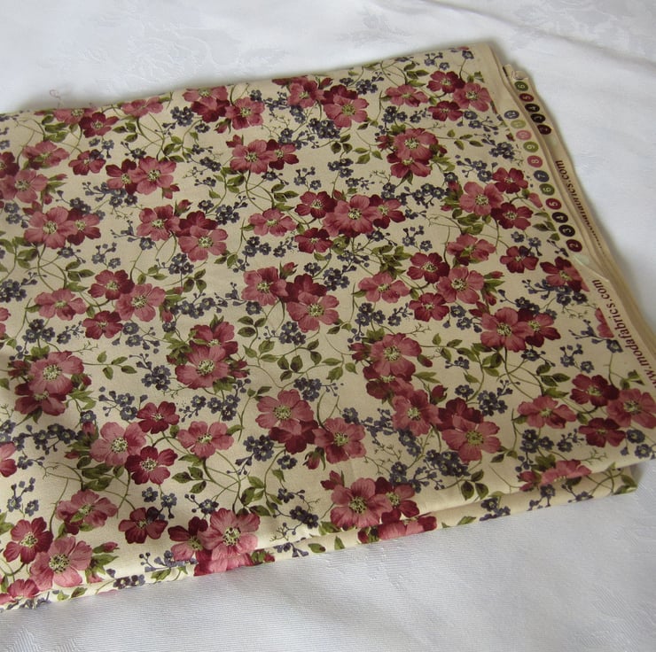 2 metres of a pretty pink flower on cream background fabric by Moda Fabrics. The design is called Kristen. It is 114 cm wide.