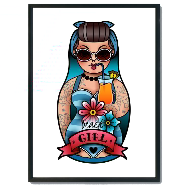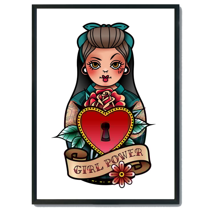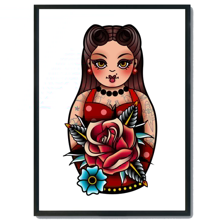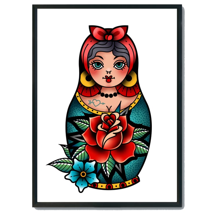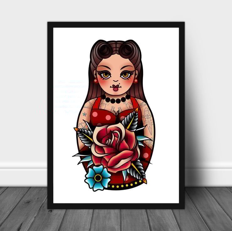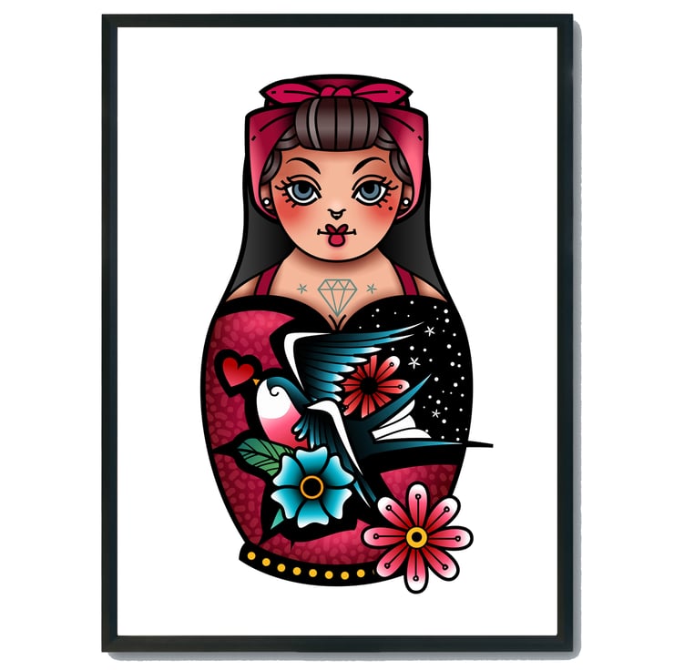 Russian dolls tattoo style wall prints, russian dolls pin up wall decor