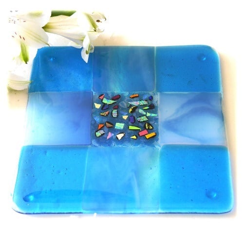 My glass fusing kiln is only small so these fused glass pieces are all one-off designs, no mass production possible.