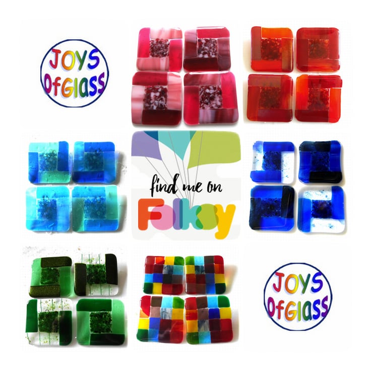 Part of my Joysofglass Fused Glass collection. All handcut by me, decorated and then fused to very high temperatures in my kiln.