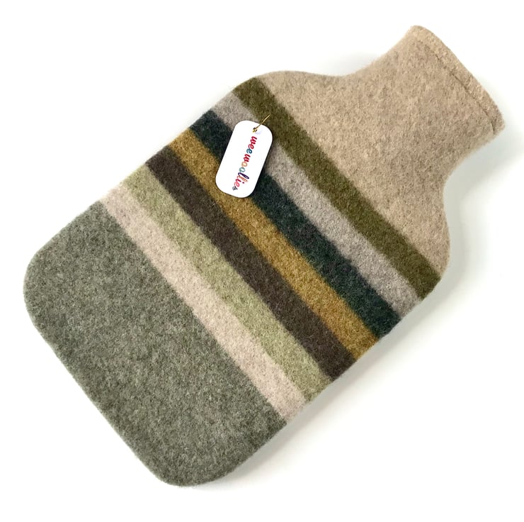100 % Felted Merino Lambswool hot water bottle. Luxury yarn knitted and Felted to create a soft hand feel.