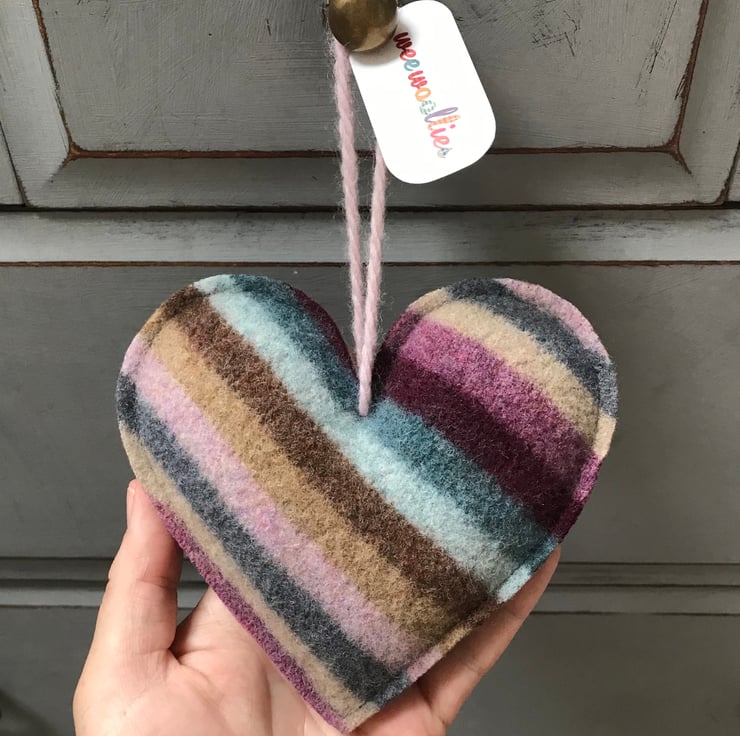 The hearts measure approx 15cms x 13cms and each one comes with a hanger / tie and our weewoollies label.