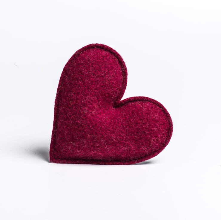 The hearts are knitted in 100% Merino Lambswool and and then felted to give a soft handle.