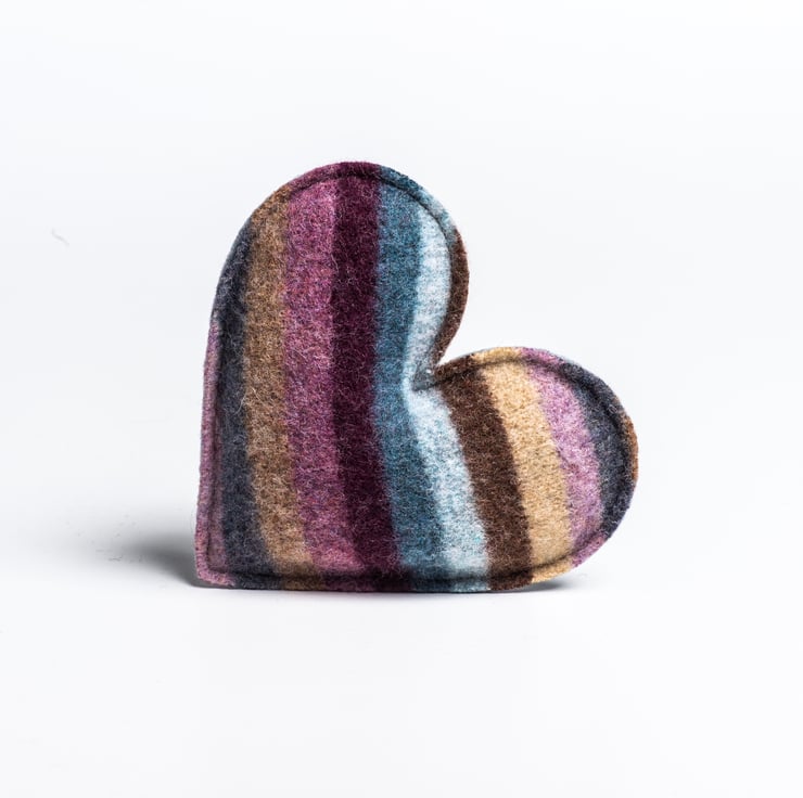 The hearts are knitted in 100% Merino Lambswool and and then felted to give a soft handle.
