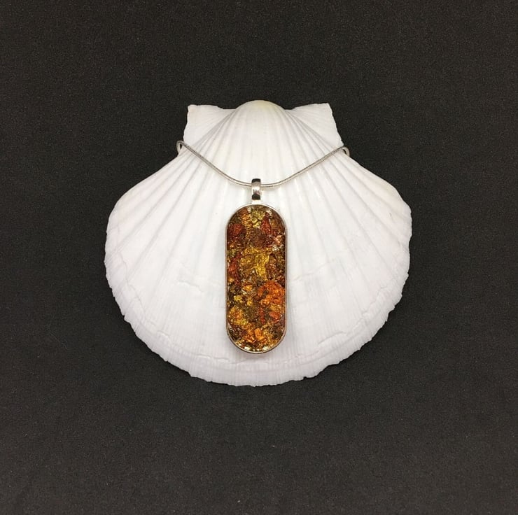 I was inspired to capture the gorgeous colours of autumn and the colours of the metallic flakes really work beautifully in this pendant.