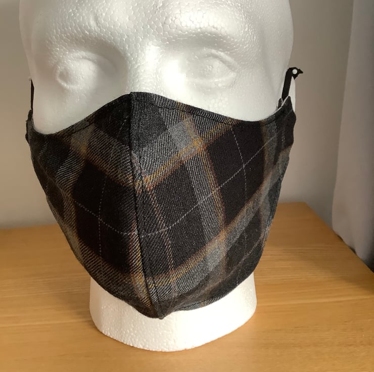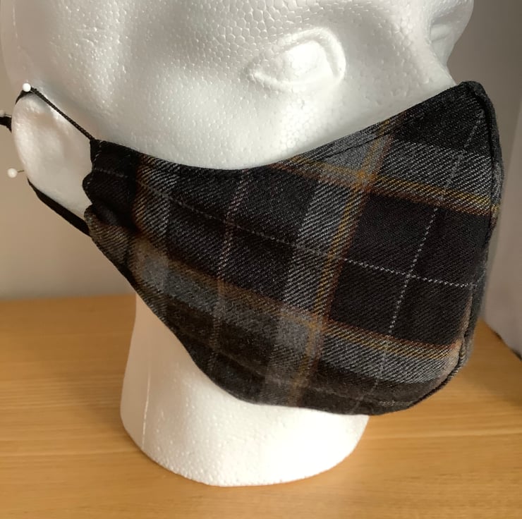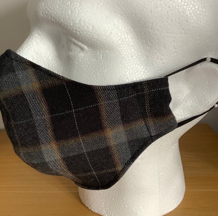 Hand made with a quality Light weight wool tweed tartan reusable face mask.