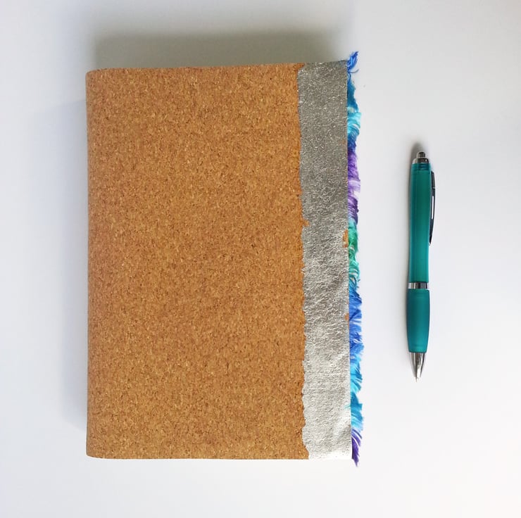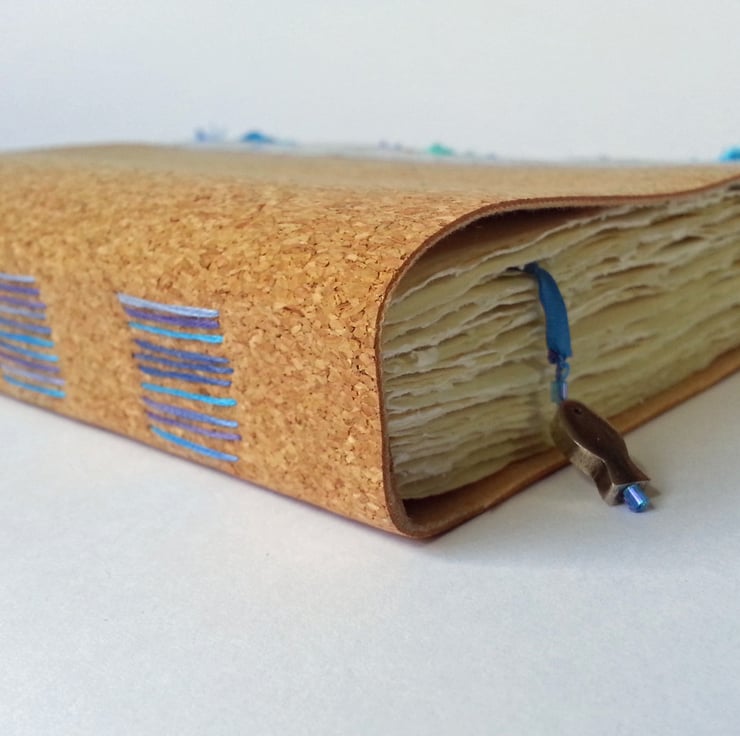 A really special Coastal inspired A5 sketchbook with soft covers of cork material, with hand made Khadi paper pages. A wonderful gift for an artist.