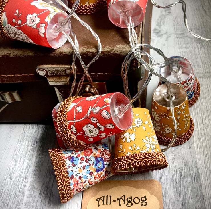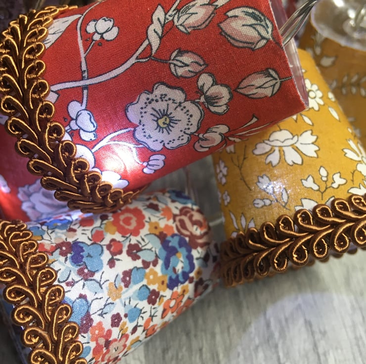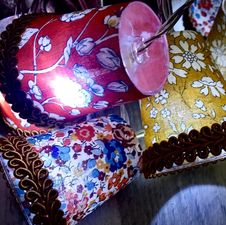 I also do custom lights to order, and can even use your own special fabric, so please contact me if you would like a particular colour combination to fit with your decor, or have a specific fabric in mind. Just remember that these are mini lampshades, so the prints I use have to be mini too!