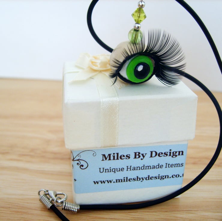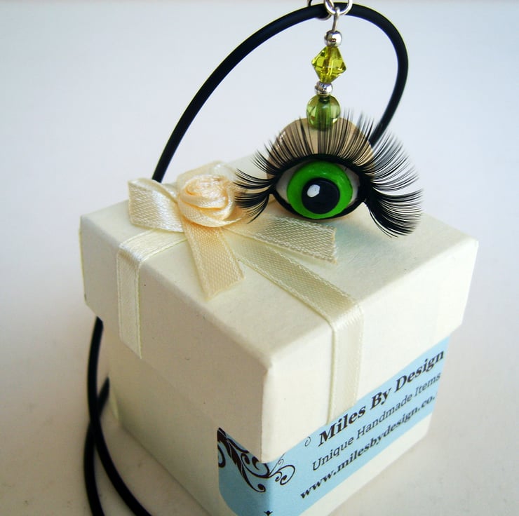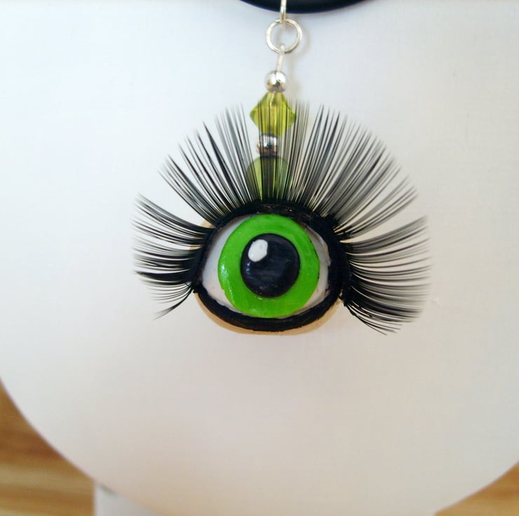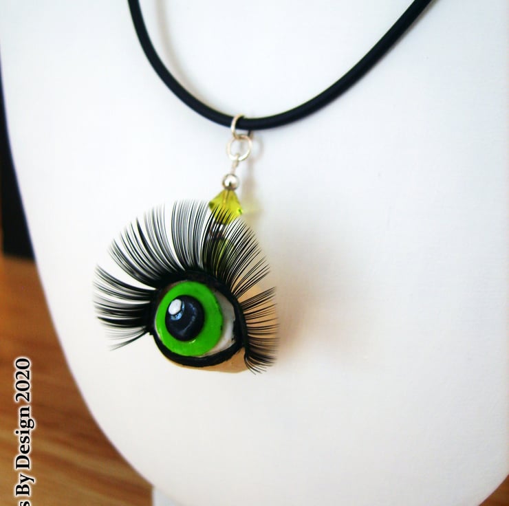 The eye is handmade from polymer clay with a real false eyelash for that wow look.