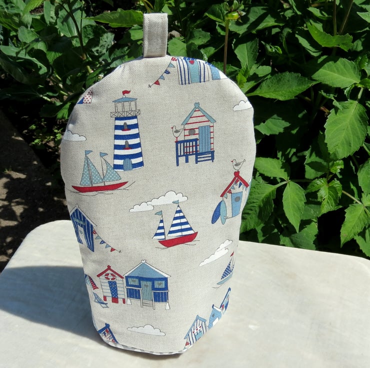 This cafetiere is made from a medium weight, linen look cotton, with a nautical design.
