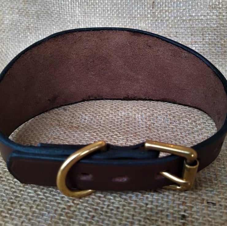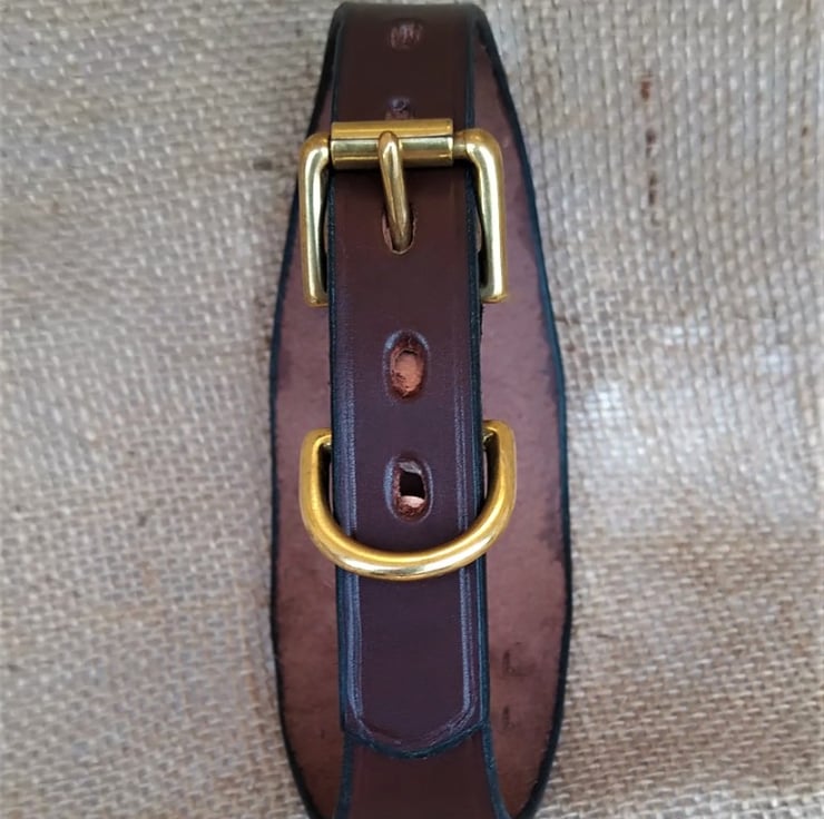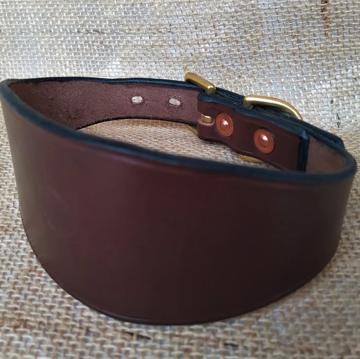 Hand made leather greyhound collar made from beautiful English bridle butt, English brass buckle and copper saddler's rivets
