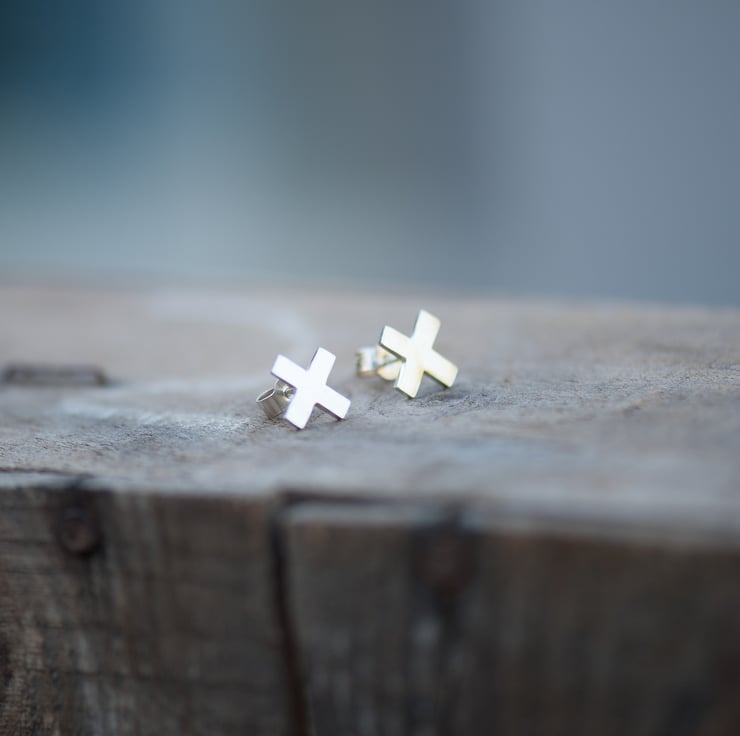 I make these earrings to order from sterling silver, using a jewelers saw to hand cut the little cross shapes out.