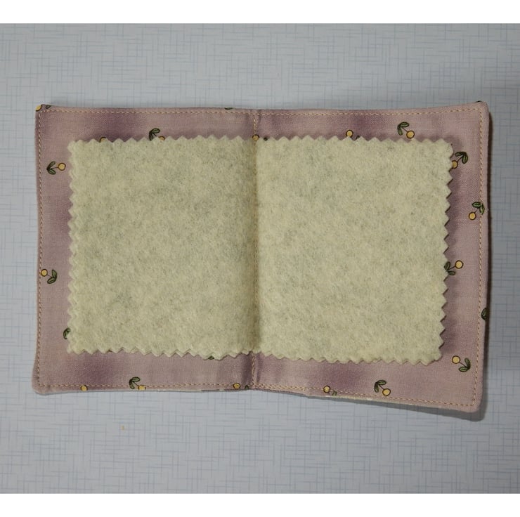 Lovely lilac butterflies flutter across this pretty needle case, which measures approx. 4.25 x 3.25 inches. It is made from a delightful linen effect fabric, with a toning spine and lined in a toning fabric. It has four felt leaves for your pins and needles.