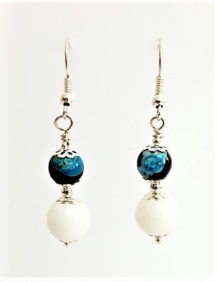 Beautiful semi-precious gemstone earrings featuring blue agate and white jade.