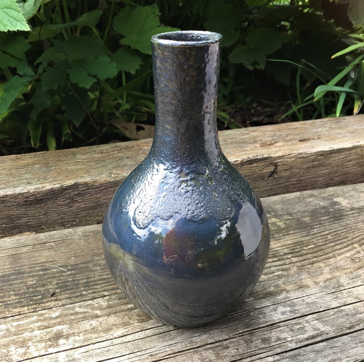 pewter black shiny vase