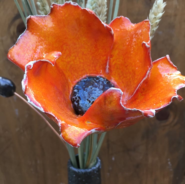 Handmade ceramic poppy on wire stem