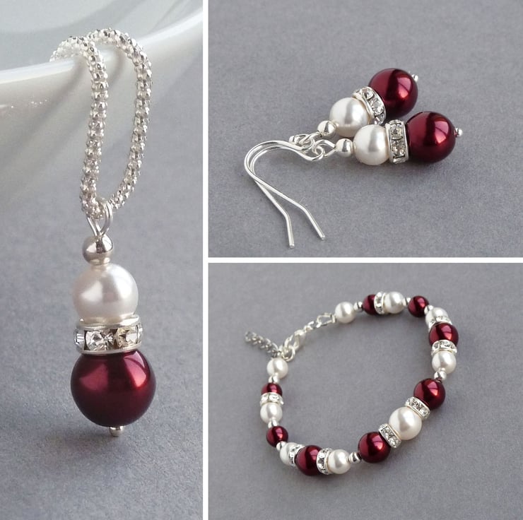 Burgundy pearl and crystal necklace: https://folksy.com/items/7009315