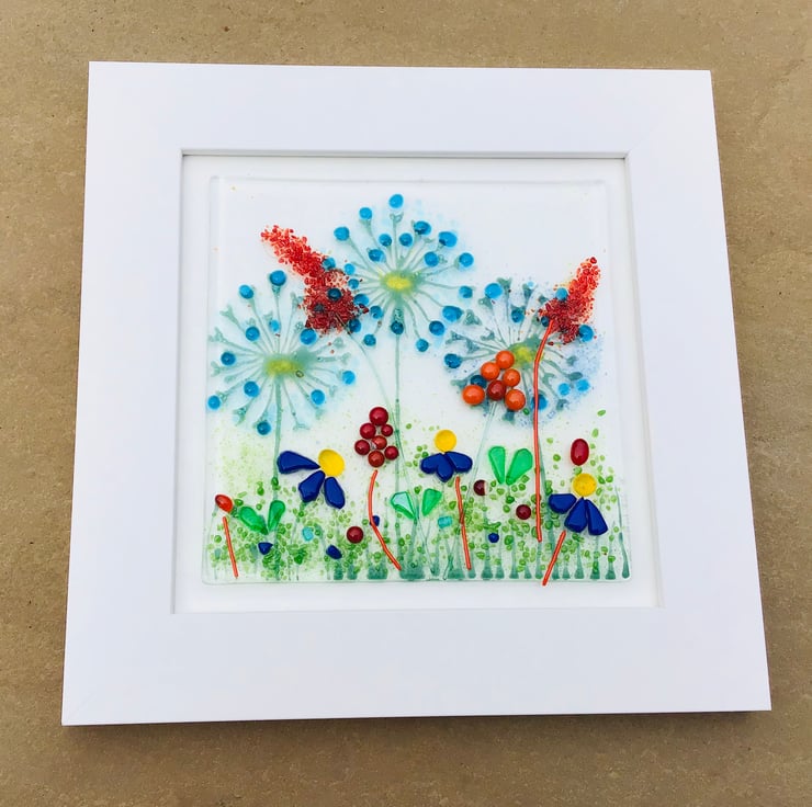 Beautiful and vibrant hand cut flowers in beautiful vibrant colours set within a 20cm square white framed picture