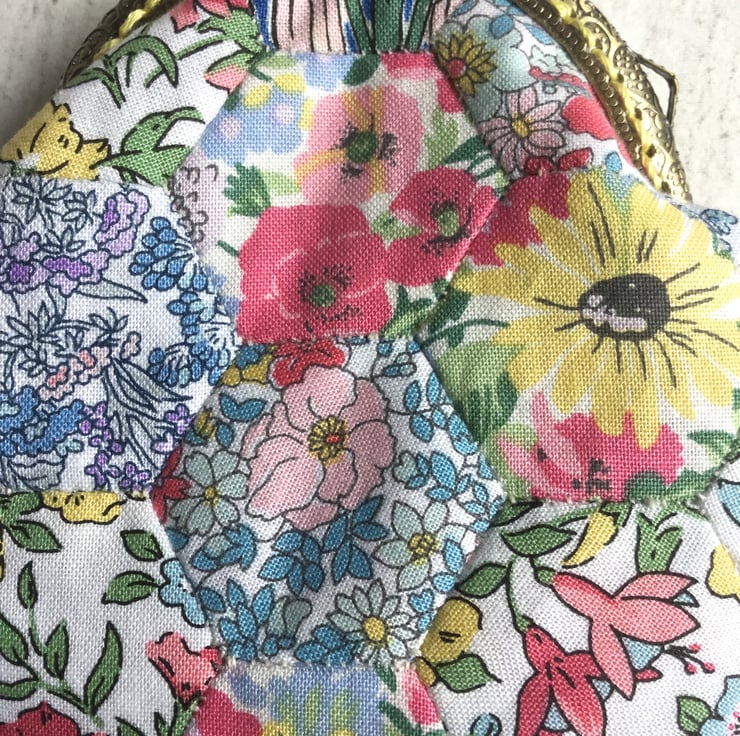 I have taken up English paper piecing after an absence of many years and it was just perfect for creating my signature clasp purses. Also fell in love again with Liberty fabric. A match made in heaven and a joy to create.