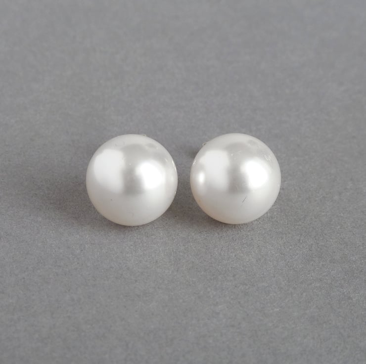 This large pair of simple pearl studs has been created using 12mm white glass pearls. As each pair of these chunky pearl stud earrings will arrive individually gift wrapped, they make perfect gifts and are ideal for weddings.