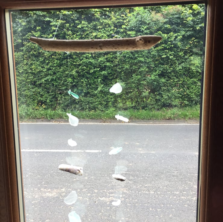 Much of the glass I find on the beach is not suitable to be made into jewellery, yet still has a natural beauty. Suncatchers are an ideal way to show this off. I spotted this piece of driftwood at Fraisthorpe in East Yorkshire - a change of scenery dog walk as lockdown eased. I can see a face in one end, a bit meerkat-ish maybe?