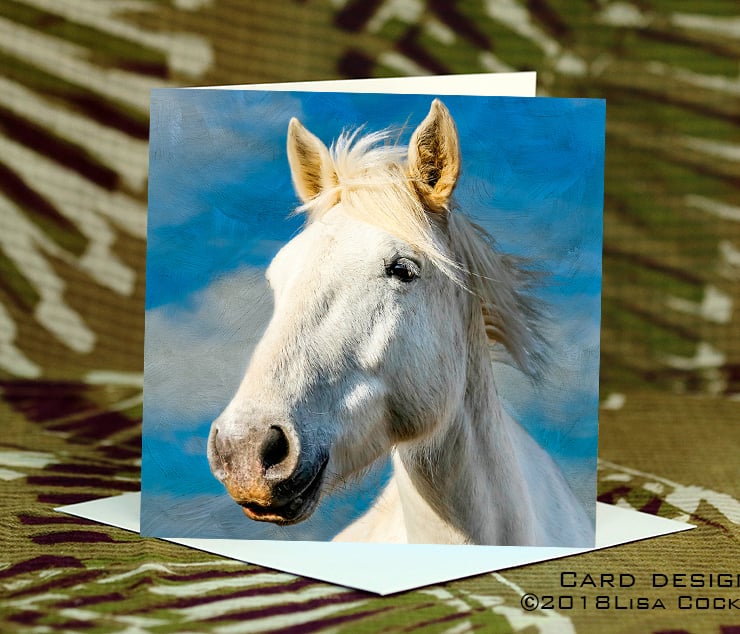 Exclusive Handmade Cloud Horse Greetings Card on Archive Photo Paper