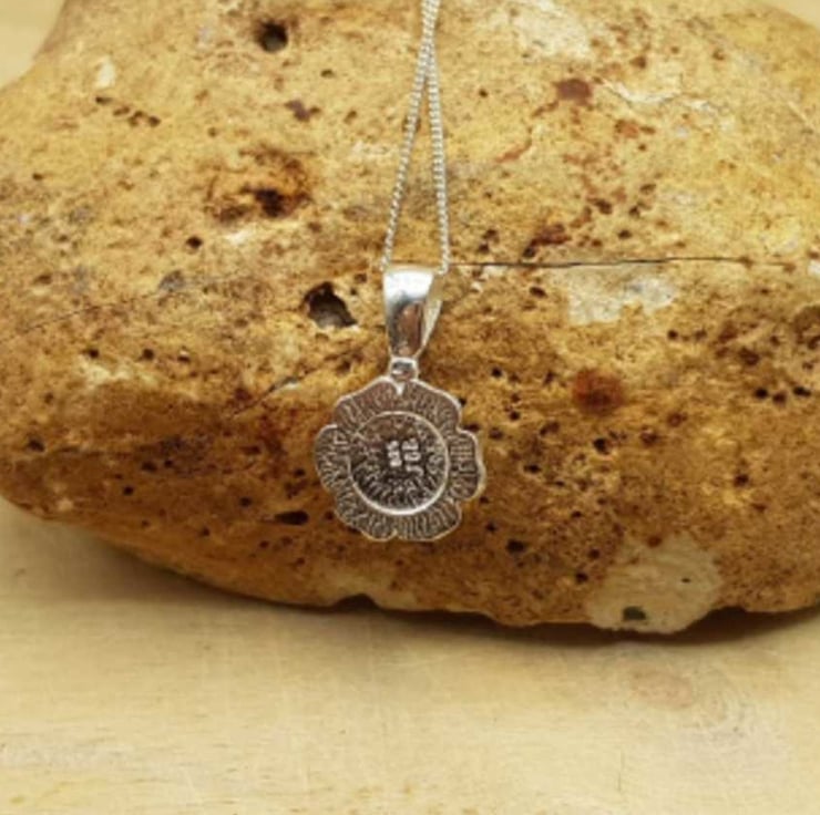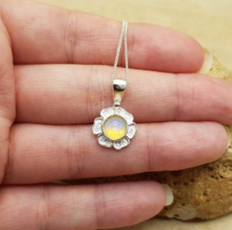 Tiny Opal flower pendant. 14th anniversary. October birthstone.