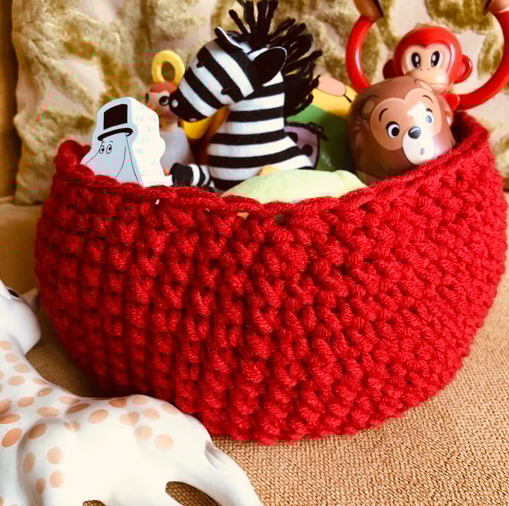 A fab storage solution for those bits and pieces, keys, nik-naks that need a home but just get moved from place to place. It's also perfect for nappies, wipes, creams and such in the nursery and makes nappy changing so much easier when everything is easily at hand. It is such a bold colour it will make quite an eye-catching accessory.