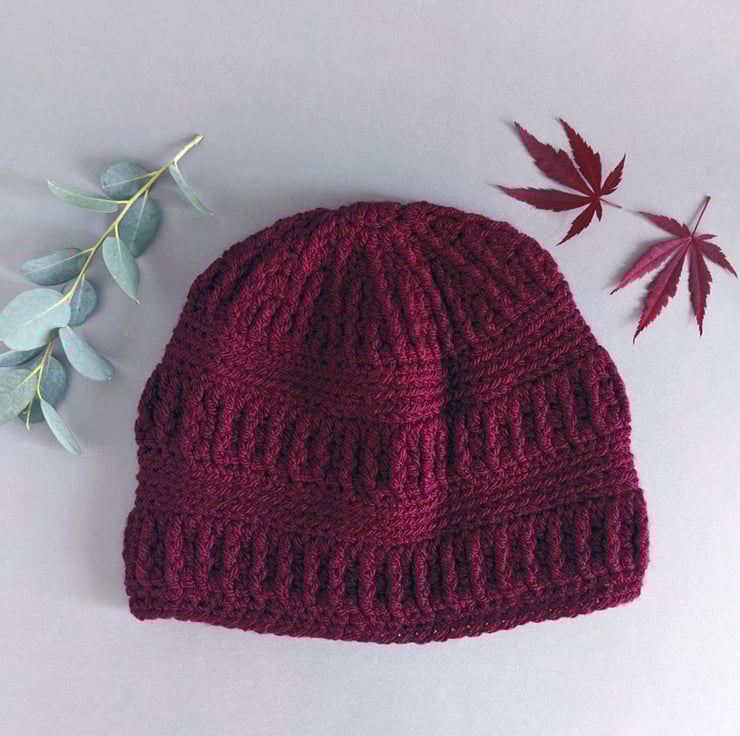 I love winter hats in all sorts of styles and patterns and this practical unisex hat has a lovely ribbed pattern.