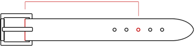 Each belt is unique, made specifically to fit you so I need the length of your belt from the buckle to your comfortable use hole (as shown in the diagram) and the width you require (popular choices are 1", 1.25" and 1.5")
