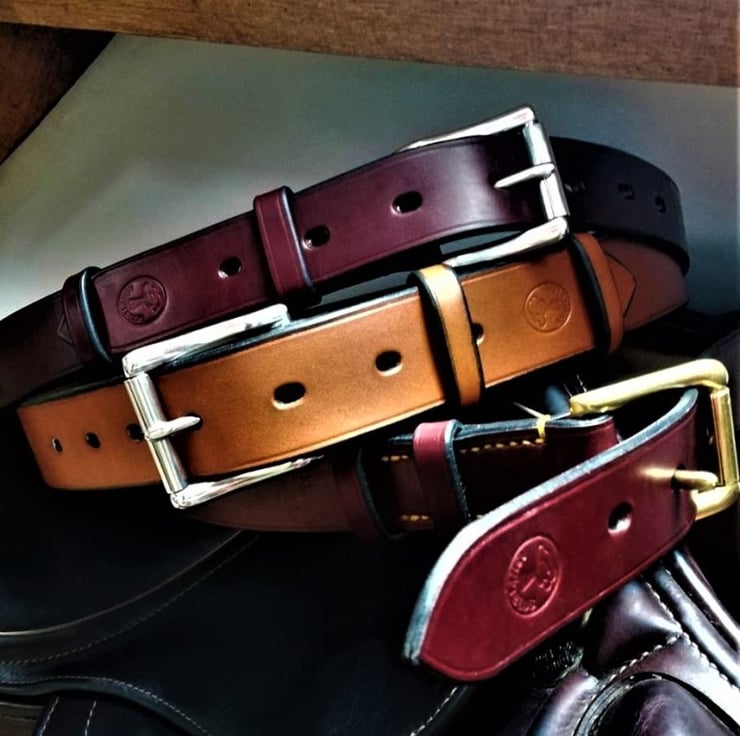 My belts are made from the best materials I can buy, the leather is best English bridle butt from old English tanneries (that I also make bridles and head collars from), the buckles are from a small foundry in Walsall and the thread is waxed synthetic known throughout the world as 'Tiger' thread from Germany.