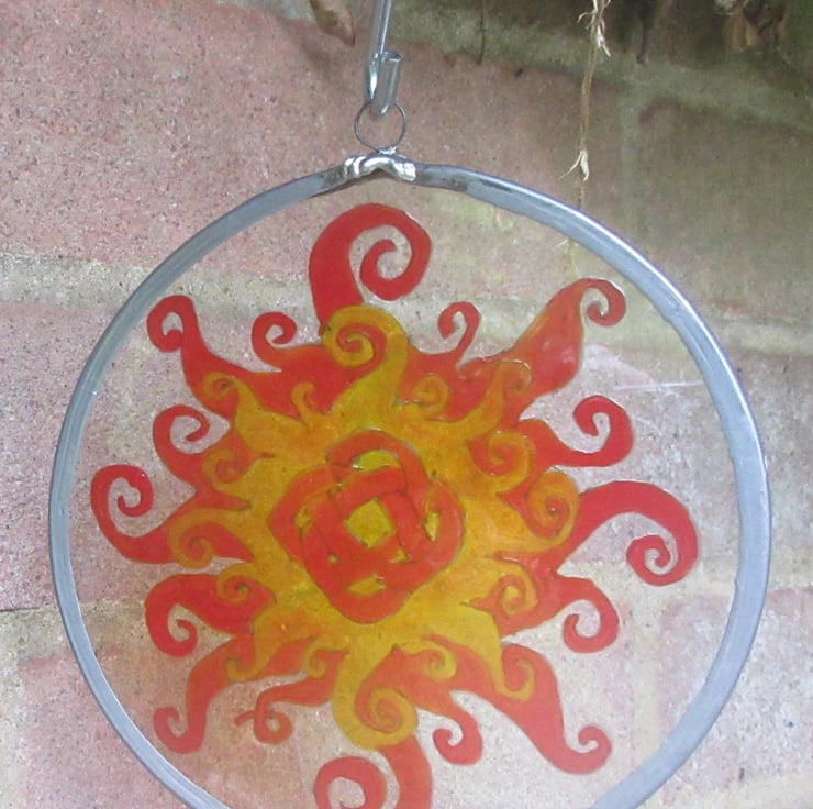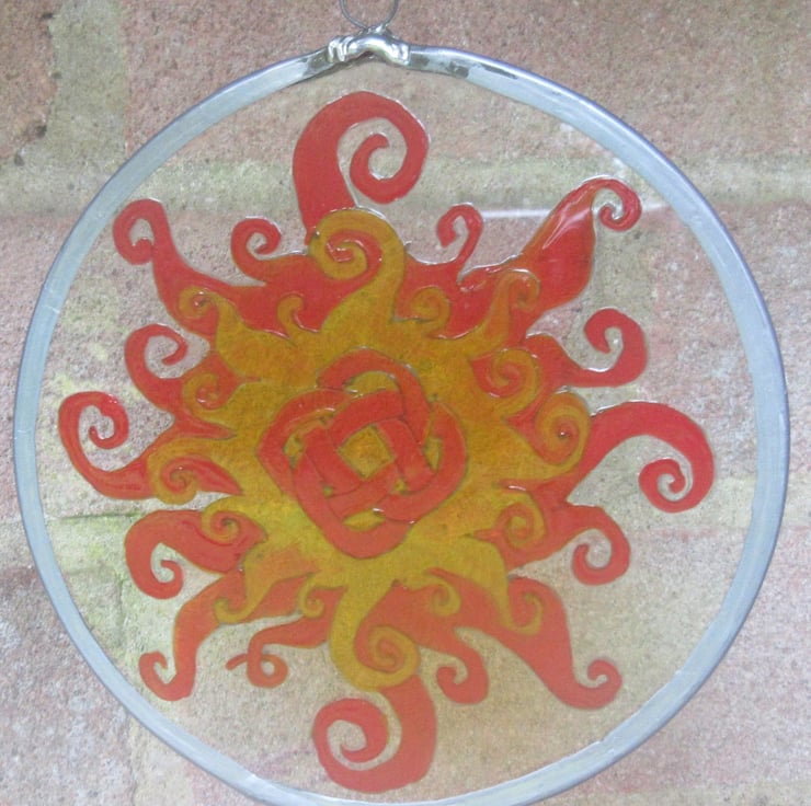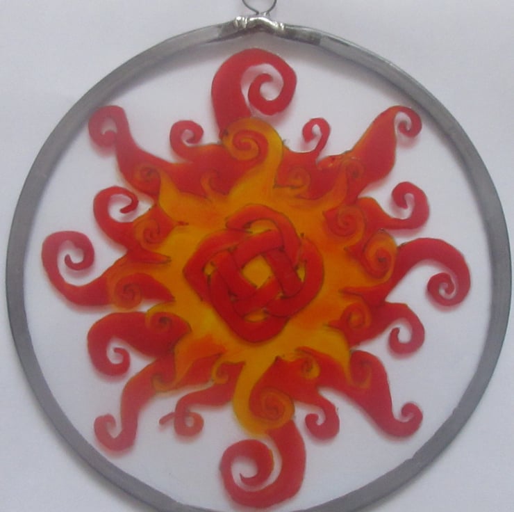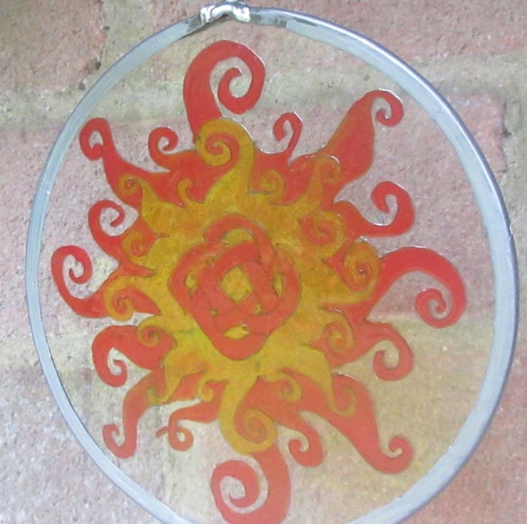 I love Celtic designs and this sunburst with a Celtic Knot in the centre is a particular favourite. The Celtic sun burst has been in painted in reds, yellows and oranges.