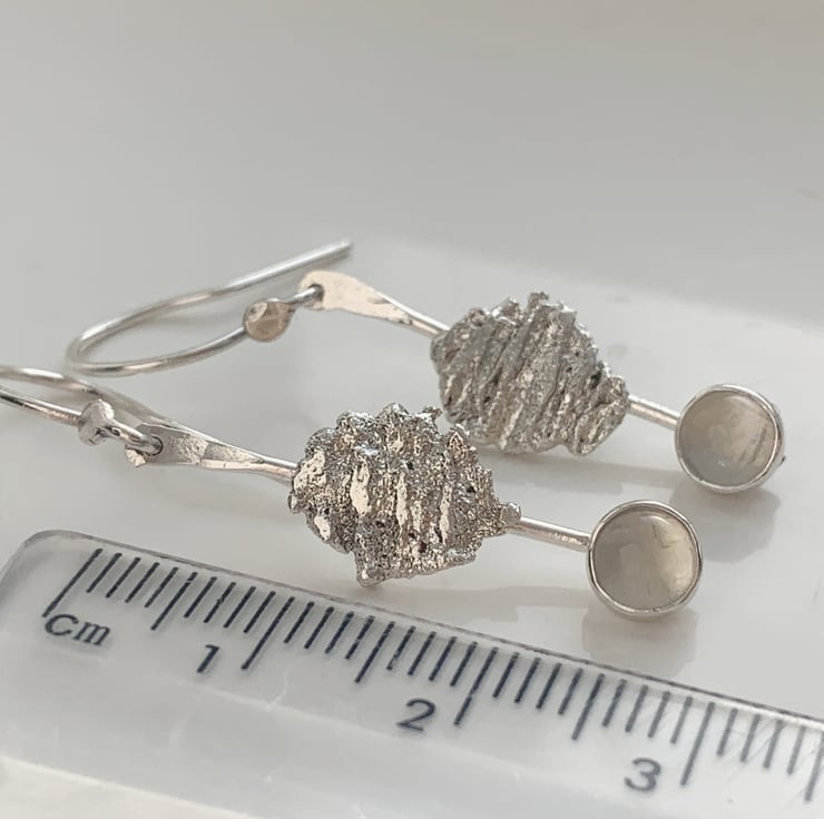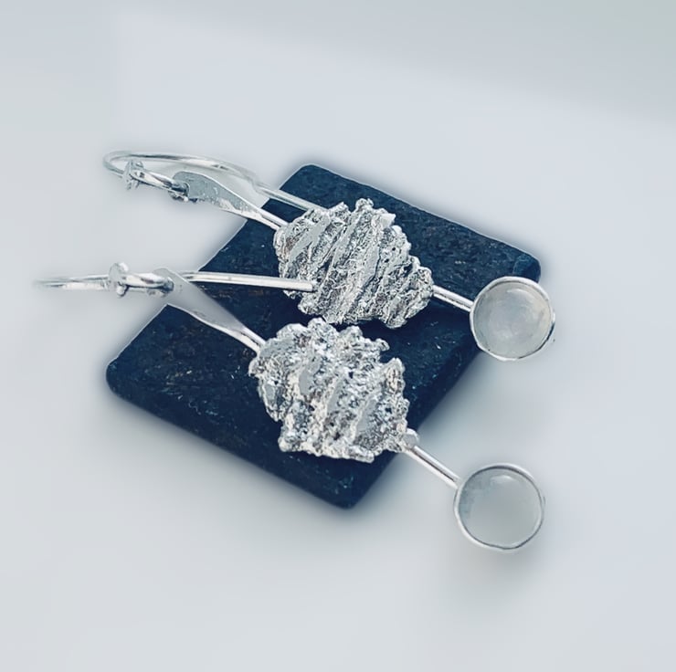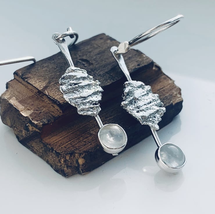Recycled Sterling heat texture design with moonstone gems silver earrings