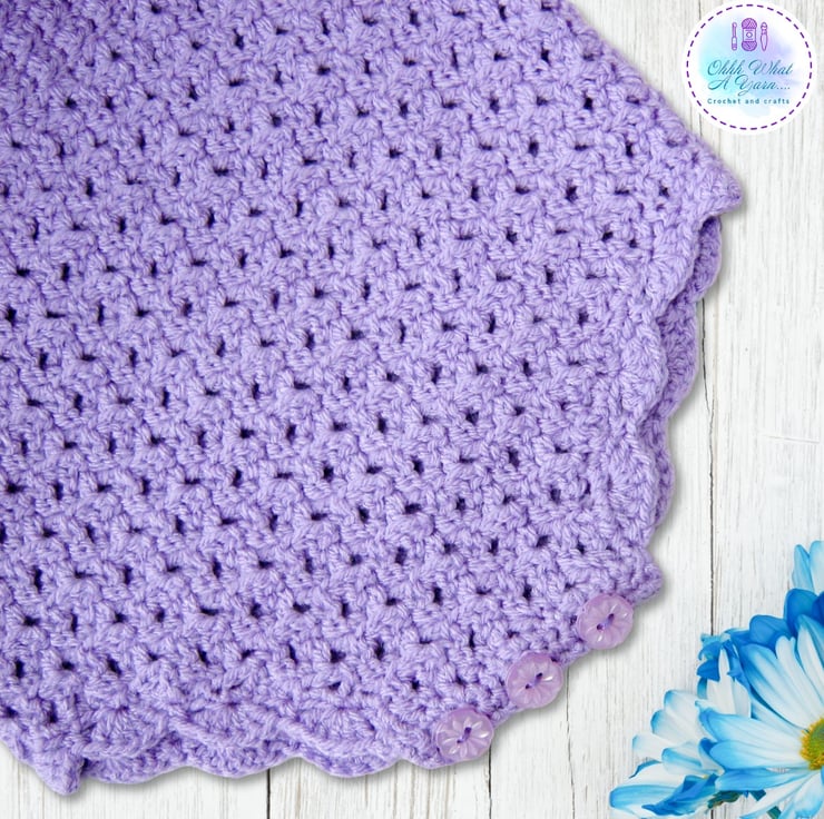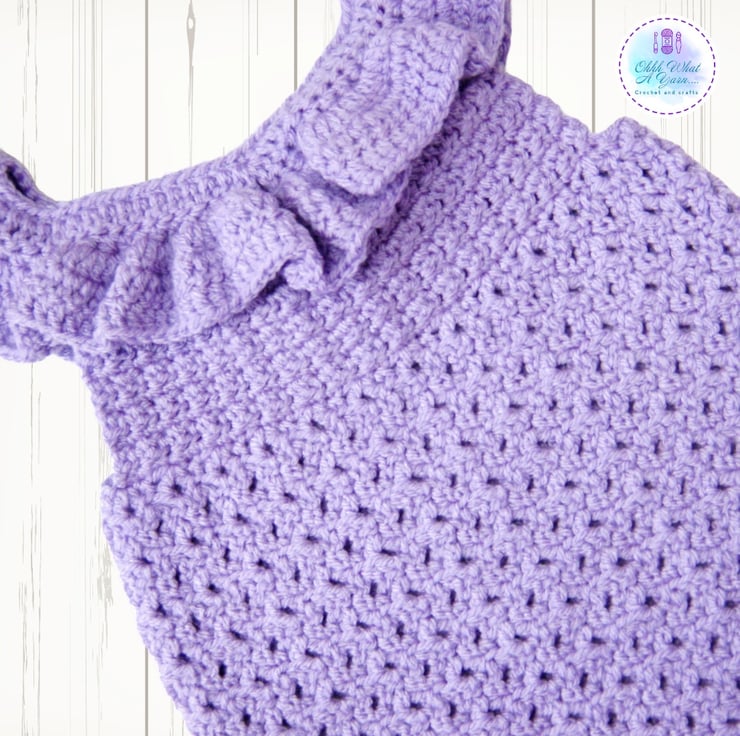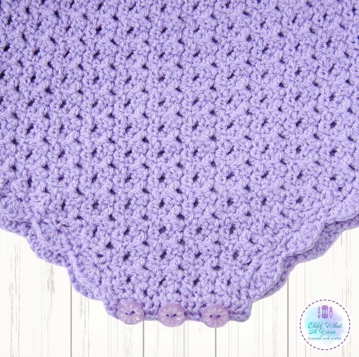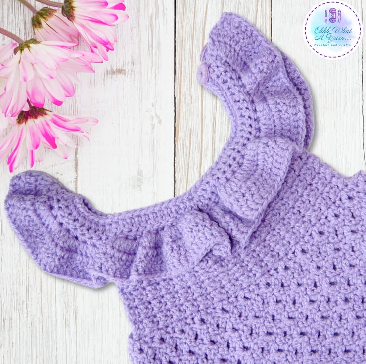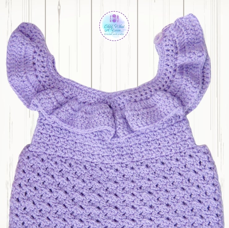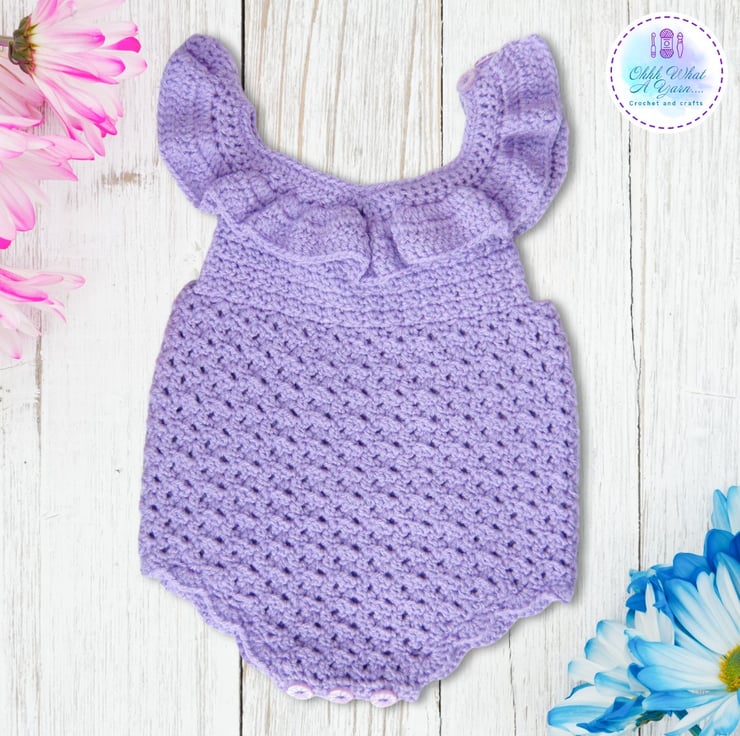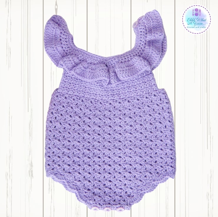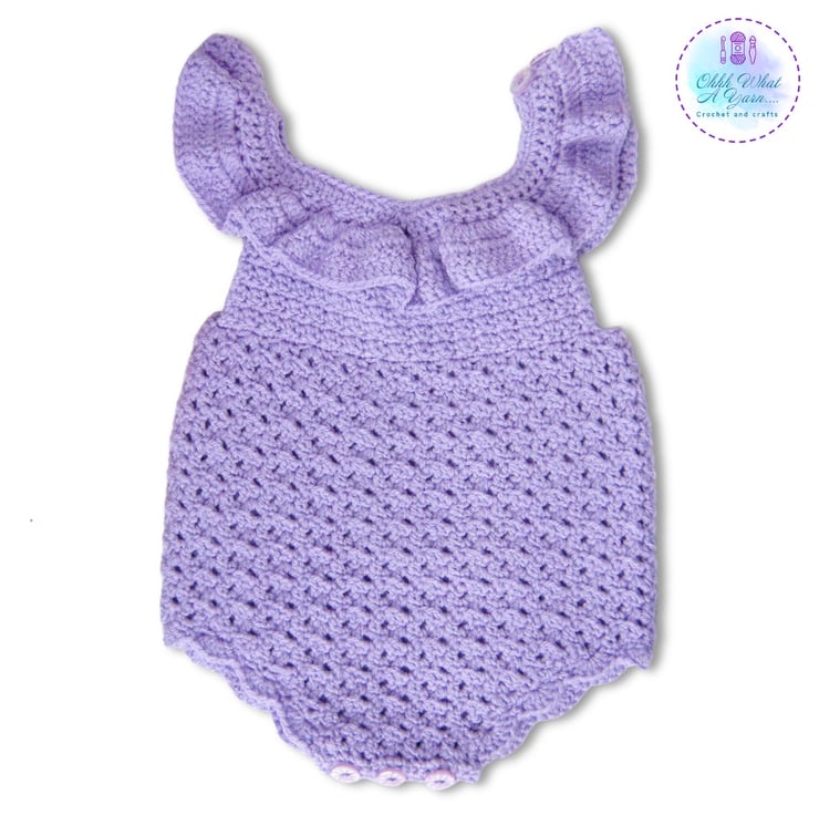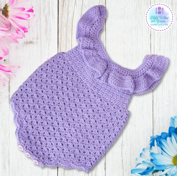 This super cute lilac romper has been crocheted in Stylecraft special 100% acrylic DK Yarn.