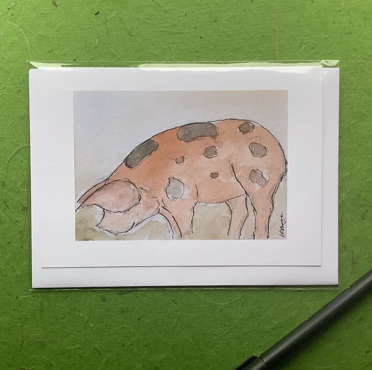 Greetings card featuring a print of my watercolour of a Gloucester old spot pig.