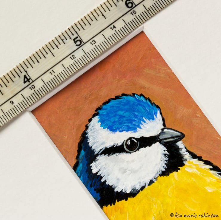 Although cats are my main source of inspiration, and favourite subject to paint, I also enjoy painting other creatures. Birds are in my top 10 and I love the striking plumage colours of the blue tit.