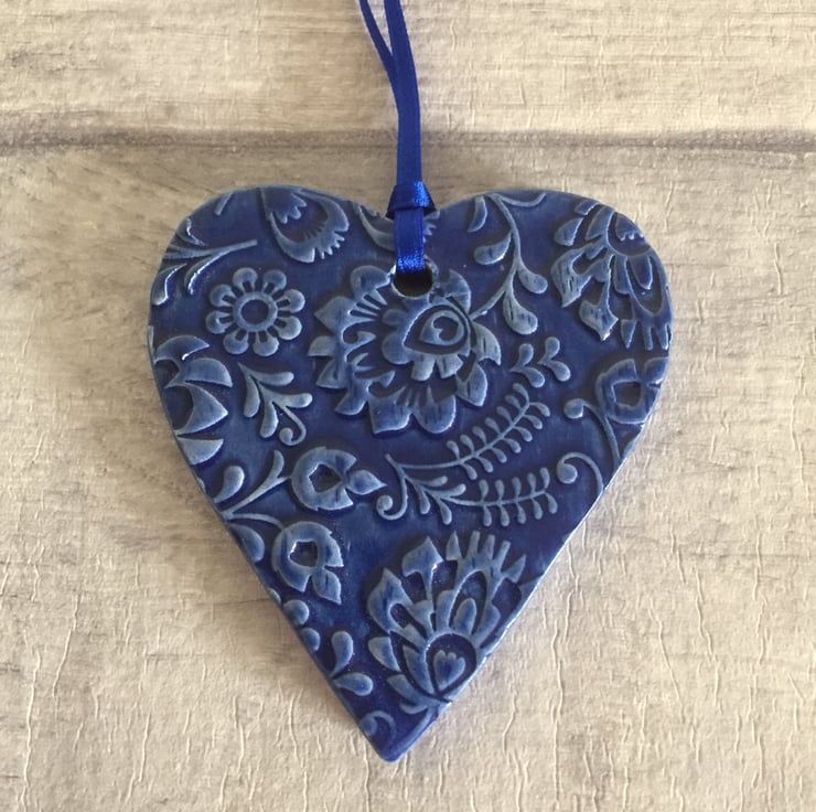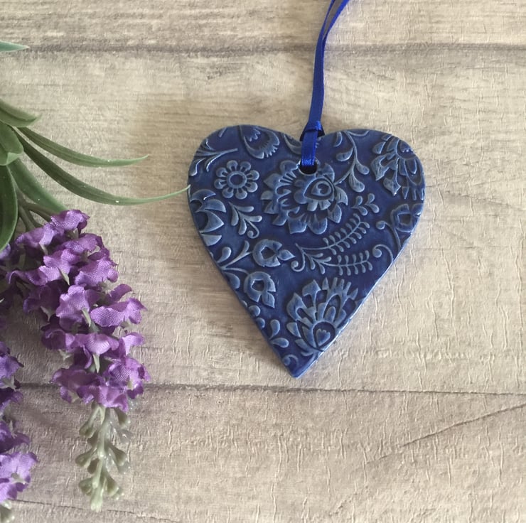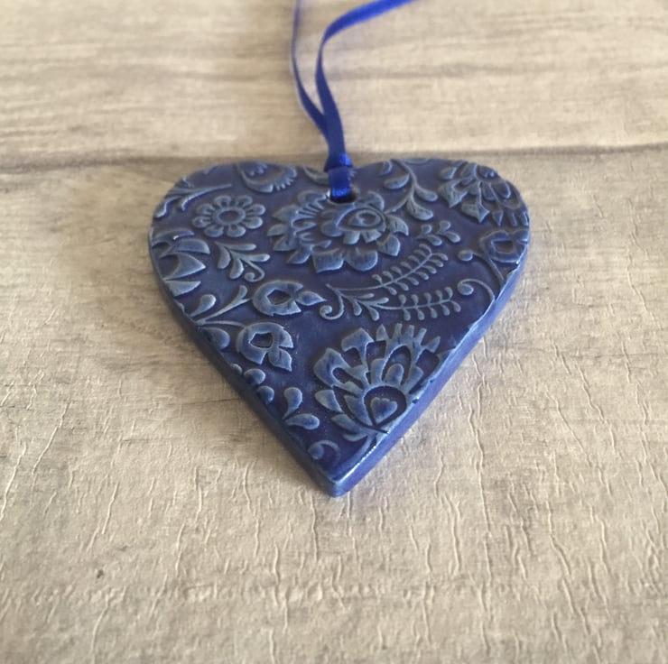 Here we have my handcrafted, ceramic textured hanging hearts. It would make a lovely gift. These hearts have had texture added to the fronts and the backs are plain white.