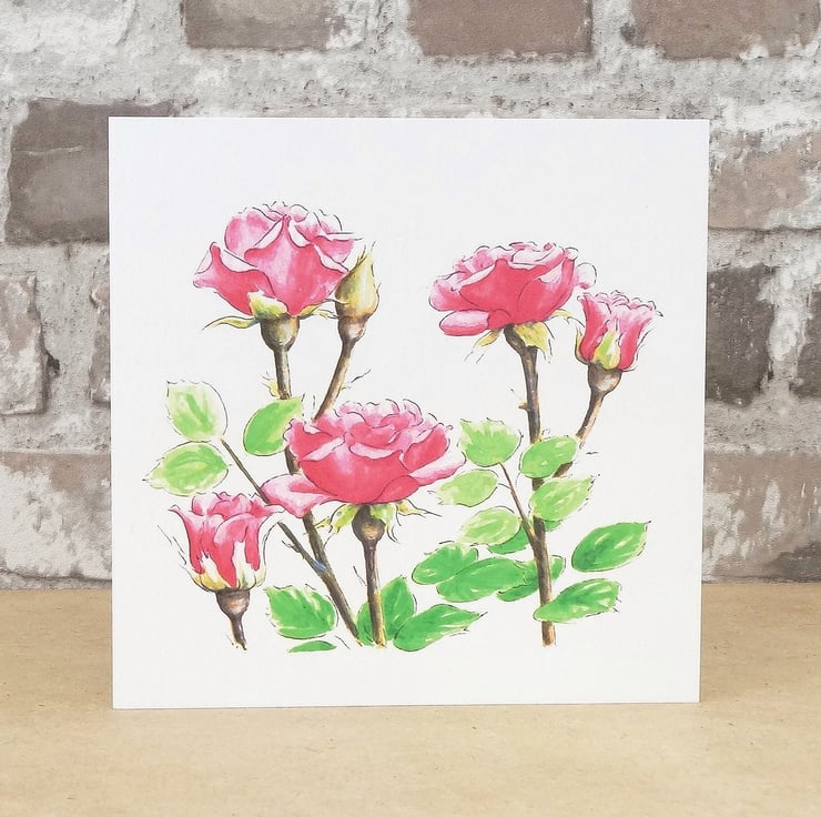 This eco friendly blank Pink Roses card has been printed with my own original rose artwork on to recycled felt white textured card.