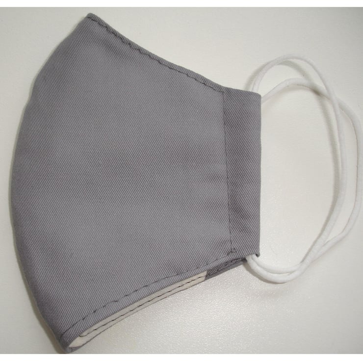 A Plain Block Solid Colour Face Mask - Grey Cotton Drill ( thick fabric )