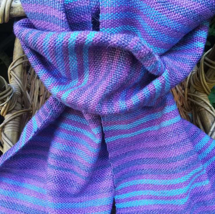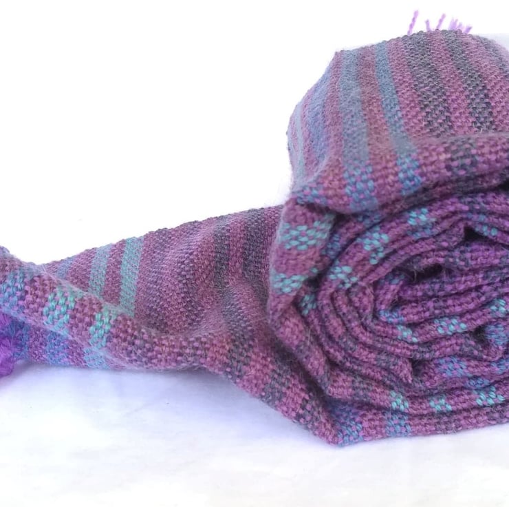 I was inspired to weave this scarf becase I had made socks in the same yarn and thought it would work as a scarf because the alpaca makes a silky fabric.