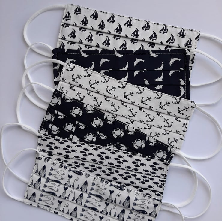 I've been making these for family and friends for a while. Having seen images of disposable masks littering the countryside and beaches I've decided to make some of these reusable alternatives for sale.