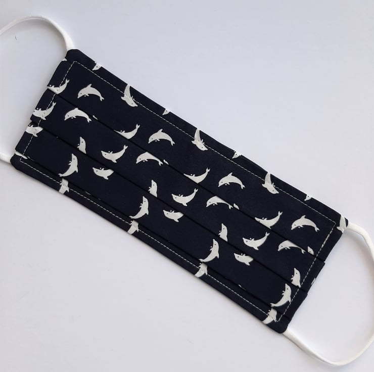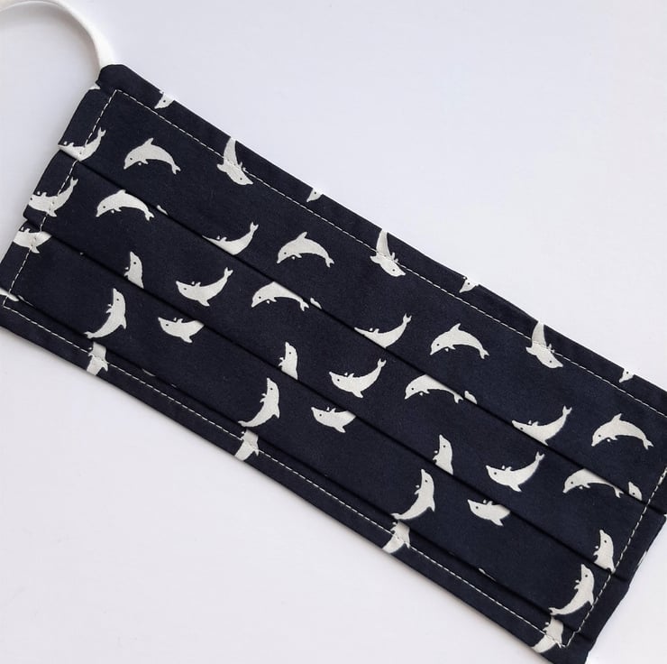 A washable fabric face covering made from two layers of good quality quilting cotton. This is a medium sized face covering with soft elastic ear loops.
