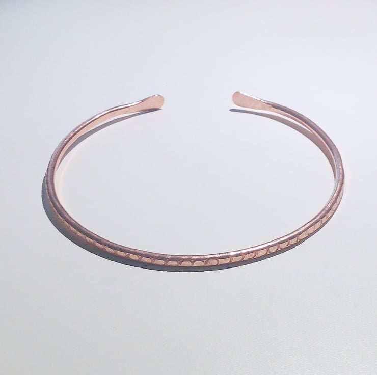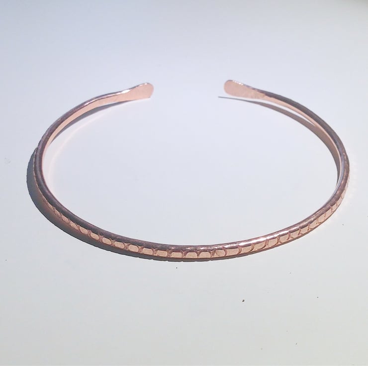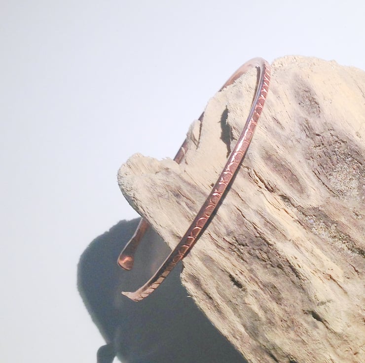 This lovely bangle has been hand crafted from copper and has been given an attractive hammer stamped finish.