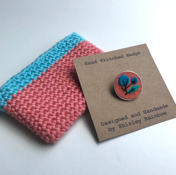 A super cute badge and purse set, with matching bright pops of colour, ready to give as a gift. I am happy to gift wrap and send straight to your recipient!