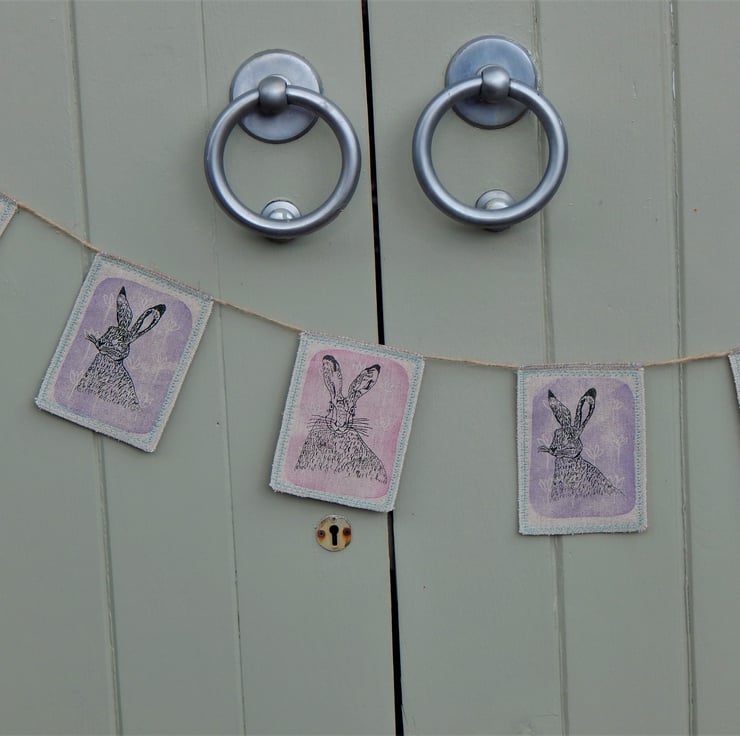 This would make a lovely gift for a hare lover. The hanging goes perfectly on a wall, over a bed frame or across the top of furniture, for example a bookshelf or dresser.