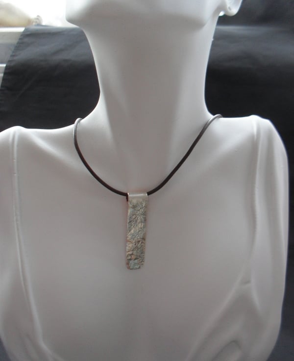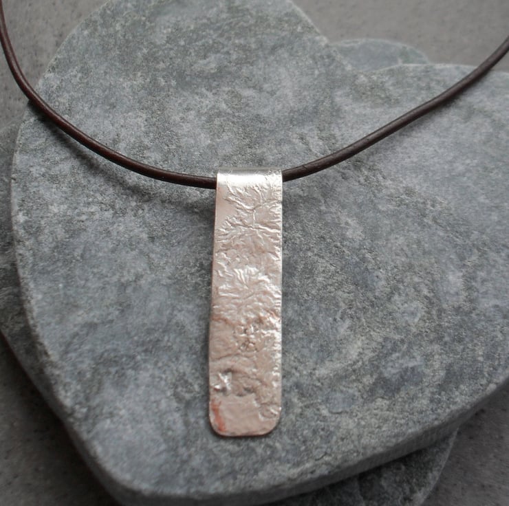 This Copper pendant has been cut from a sheet of copper.