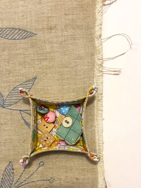 I first made one of these trays to keep bobby pins in, in my bathroom. Now I have trays dotted about the house- there’s always a use for them! The trays have been photographed on a piece of fabric I treasure, handed down from my Grandparents.